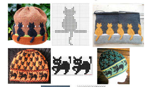4 шапки с котиками. Схемы вязания жаккарда.