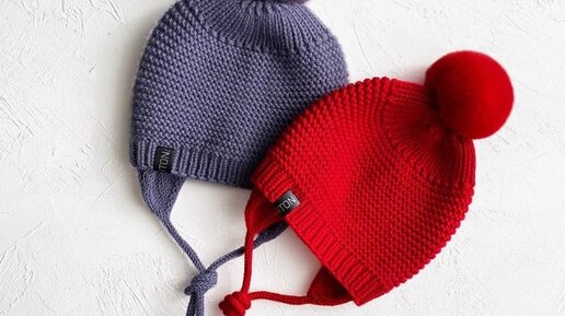 Шапочка для новорожденного спицами. Детская шапка. Фиксированный отворот. Завязки полым шнуром.