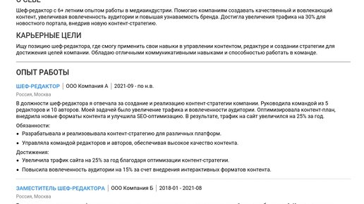 Пример резюме шеф-редактора 2025 - Как составить