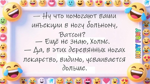 Анекдоты из серии Шерлок Холмс и доктор Ватсон. Классический юмор, который заставит вас улыбнуться! 😄 *** Шерлок Холмс встречает доктора Ватсона. Ватсон: — Ну и погодка, Холмс… Холод собачий! — Именно поэтому вы и надели тёплые панталоны, Ватсон? Ватсон (удивлённо): — Да… Но как вы догадались?! — Элементарно, Ватсон. Вы забыли надеть штаны. *** Ватсон решил доказать Холмсу, что способен перевоплощаться не хуже него. Изменив свою внешность с помощью лучших профессиональных гримёров, он входит...