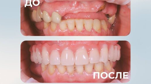 Работа стоматолога-ортопеда и хирурга-имплантолога, к.м.н., главного врача «АО СТОМ» Коваленко Олега Игоревича, с опытом более 22 лет. Пациентка обратилась с просьбой зафиксировать старый мостовидный протез. Осмотр показал: конструкция треснула, а корни опорных зубов были разрушены, поэтому восстановление оказалось невозможным. Было принято решение удалить поврежденные зубы верхней челюсти, установить 4 имплантата и изготовить несъёмный протез. За один приём удалили разрушенные зубы и провели имплантацию по технологии ALL-ON-4 на имплантатах Nobel...