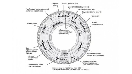 На боковине новой шины нанесено множество обозначений. Большинство из них содержат информацию служебного характера, однако, некоторые могут оказаться полезными для покупателя. Подбирая новые автошины, руководствуются, прежде всего, их размером или, корректнее, типоразмером. Он наносится на боковине покрышки крупными символами, сочетание которых имеет следующий вид: 175/70 R13 82 T 175 ширина профиля шины, мм;