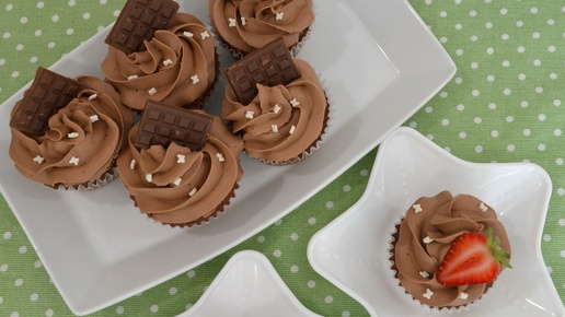 ⚡Шоколадные капкейки с вишнёвой начинкой и шоколадным кремом! Воздушные, красивые мини тортики!🧁