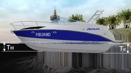 Дифферент = Тк − Тн Если корма сидит глубже носа — дифферент на корму.