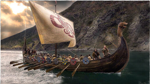 И вот мы видим: 9-ый век заканчивается и наступает 10-ый, а тем паче 11-ый век – это, как мы говорили, время сложения сначала крупных сильных вождеств на территории Скандинавии, а потом и прямо государств, которые, собственно, и покончили с эпохой викингов, и мы сразу видим, как появляются куда более крупные корабли, потому что 24 метра – да, это здоровый корабль, но мы видим, как в 11 веке появляются корабли более 30 метров в длину. «Большой змей». Да, вот именно, что «Великий змей», или «Великий червь» Олафа Трюггвасона – это ь70 гребцов, 35 шпаций у него было, 35 отделений...