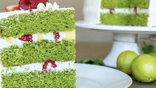Ингредиенты для бисквита: 280 гр сахара 200 гр шпината 290 гр муки 100 гр масла растительного (без запаха) 7 гр разрыхлителя 7 шт яиц (С1) 1 шт лайма 1 ч. л. экстракта ванили Приготовление бисквита: Шпинат с цедрой, соком одного лайма и с растительным маслом измельчаем в блендере. Яйца взбиваем с сахаром и ванилью в пышную массу (одну минуту). Вливаем шпинат и аккуратно вымешиваем. Всыпаем частями просеянные и перемешанные муку и разрыхлитель с солью. Вымешиваем очень аккуратно, снизу вверх, чтобы тесто не опало...