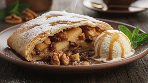 Штрудель - это изысканное австрийское лакомство, которое получило своё название благодаря свёрнутому в рулет слоёному тесту. Однако, история штруделя уходит корнями в Турцию, где была создана пахлава - десерт, который послужил вдохновением для австрийского блюда. В 1453 году турецкая пахлава была завезена в Австрию, и её тесто стало основой для штруделя. В XVIII веке штрудель получил мировую известность, а яблочный штрудель стал национальным блюдом австрийской кухни. Рецепт штруделя с молочным кремом, написанный от руки в 1696 году, по сей день хранится в Городской библиотеке Вены...