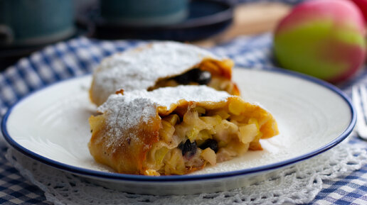 Пеку штрудель из остатков пельменного или любого пресного теста. Раскрываю приём, с которым он всегда получается мягким снаружи и внутри