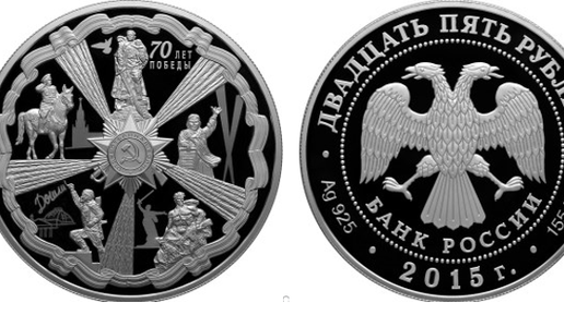 Оригинал или копия? 25 рублей — «70-летие Победы советского народа в Великой Отечественной войне 1941−1945 гг.» 2015 года СПМД Серебро