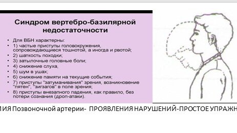 ЛФК при синдроме Вертебробазилярной артерии (ВБН). Помоги себе сам при синдроме позвоночной артерии (ХВБН) 🆘ИТАК разберем СИНДРОМ ВБН . Что это и как помочь себе методами ЛФК . Часть 1 Синдром вертебробазилярной артерии (СВБН). Вертебробазилярная артерия является веточкой позвоночной артерии, которая является веточкой надключичной артерии. Конечно у нее есть сестра-такая парная вена и брат –нерв. Получается сосудисто-нервный парный пучок (право-лево). Свое название она получила, когда вошла в отверстие поперечного отростка 6 шейного позвонка...