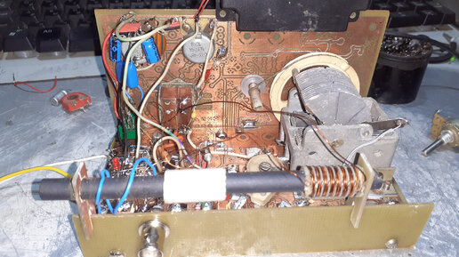 Всем доброго, вчера вечером... нет - сегодня ночью испытал синхродин ВТ Полякова на диапазон средних волн. Схема почти полностью повторяет приведённую на рисунке 1. Изменения изображены красным. Еще не совсем разобрался как именно происходит "захват" несущей частоты принимаемой станции, но это происходит. В ролике четко слышно как происходит захват частоты. При подходе к станции слышно свист меняющийся по мере приближения к середине несущей, в какой-то момент происходит "захват" и частота собственного генератора синхронизируется с частотой несущей станции...