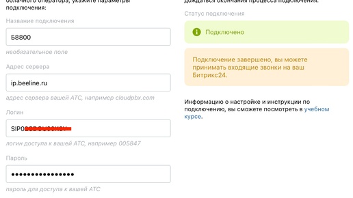 Подключение Билайн к Битрикс24 через SIP-коннектор