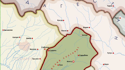В 1852 году колониальная администрация Края принудительно выселила всё население Горного магала (Цахурского владения) в Джаро-Белоканский округ. Им были отведены новые земли Елисуйского наибства/участка. После восьмилетнего пребывания в Джаро-Белоканском округе небольшая часть навсегда осталась в указанных селениях, значительная же их часть от непривычки к местному климату вымерла, и только половина из числа выселенных воспользовалась в 1860 году разрешением вернуться на прежние места жительства...