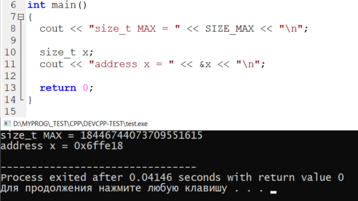 Возможно, вы встречали в исходных кодах на С++ тип size_t, а может и сами его используете. В последнем случае дальше можете не читать ))) Этот тип определён в заголовочных файлах STL как целое число, которое может работать с массивом максимально допустимого на вашем компьютере размера. На 32-разрядных системах это обычно тип long, на 64-разрядных - long long. Например, в файле _mingw.h часть кода, где объявлен этот тип, выглядит так: #undef size_t #ifdef _WIN64 __MINGW_EXTENSION typedef unsigned...