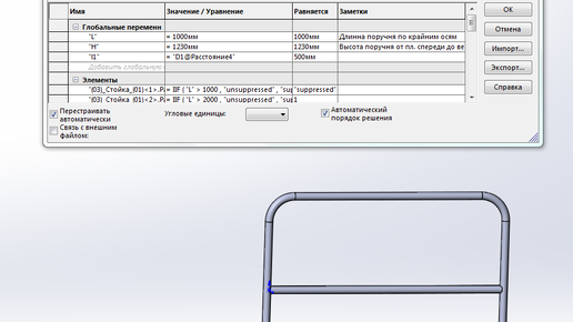 SOLIDWORKS параметры и формулы для изменения сборок