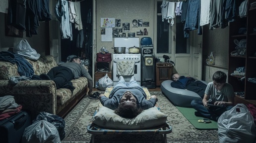 Утро в квартире Марины начиналось не с аромата свежемолотого кофе, а с резкого запаха жареного лука и тяжелого духа непроветренной комнаты. Марина открыла глаза и уставилась в потолок, где по старинной люстре ползла муха. Спина отозвалась ноющей болью — старая раскладушка, ставшая её «постелью» последние двенадцать месяцев, скрипнула под каждым движением. Когда-то эта трехкомнатная квартира в сталинском доме была её гордостью. Высокие потолки, паркет «ёлочкой», тишина, в которой так приятно было писать отчеты или просто читать, укрывшись пледом...