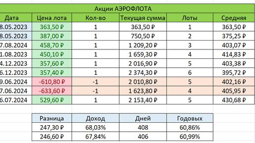 Приветствую вас на моем канале. Решил я немного размять голову, и заняться расчетами. Задачка была такая. Вычислить, сколько денег я заработал на том, что пару раз продал акции Аэрофлота из своего портфеля. Для чего мне это было нужно? Дело в том, что я веду строгий учет всех своих инвестиций. И есть у меня такая графа, как доход от продажи акций. Вообще, я инвестор долгосрочный, но периодически какие-то ребалансировки в портфеле провожу. А если акции проданы с разницей в плюс или в минус, это нужно зафиксировать, чтобы потом понимать, откуда деньги берутся, или куда пропадают...