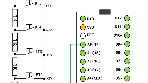 Arduino Подключение нескольких кнопок на аналоговый вход и антидребезг