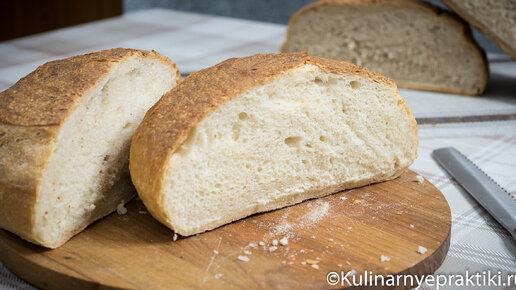 Рецепт этого великолепного во всех отношениях хлеба, мы взяли у знаменитого Джеффри Хамельмана, из книги «Хлеб», которая давно стала бестселлером у всех, кто увлекается выпечкой хлеба у себя дома. Оригинальное название - "Деревенский пшеничный" и если вы ищите вкусный белый хлеб на каждый день, но у вас нет закваски или вы не хотите с ней связываться — вам стоит попробовать испечь этот хлеб.
