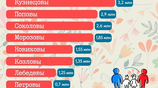 Одна фамилия! Всего в нашей стране насчитывается около 1,2 млн разных фамилий, из них 67% относятся к редким — их носят не более четырех человек. Однако остальные считаются распространенными. Организаторы...