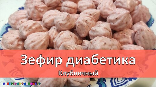 Зефир диабетика. Клубничный. Всего 45,5 кКал и 8,9 грамм углеводов на 100 грамм. Можно из замороженной клубники
