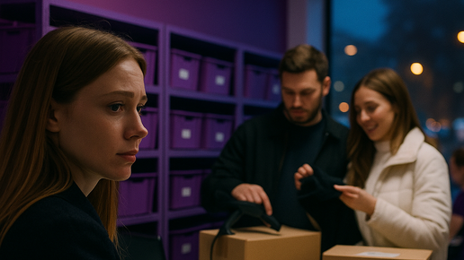 СМС от Wildberries: «Ваш заказ прибыл в пункт выдачи на ул. Ленина, 45. Ожидает получения». Я как раз возвращалась с работы. Точка выдачи по пути — зайду, заберу. Заказывала кофту и джинсы. Ничего особенного. Обычная покупка. Захожу в помещение. Очередь человек десять. Встаю, достаю телефон, открываю приложение — готовлю штрихкод. Очередь движется медленно. Люди получают посылки, проверяют, что-то возвращают. Обычная история для любого ПВЗ в час пик. Передо мной молодая девушка с коляской. Перед ней — мужчина в чёрной куртке...