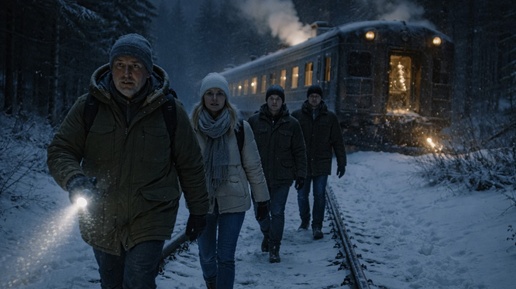 Электричка шла как обычно. Люди ехали каждый по своим делам. Кто-то дремал, кто-то смотрел в телефон, кто-то считал остановки до дома. За окнами была ночь и мороз. Тот самый, от которого стекло покрывается узорами. Вдруг поезд резко дёрнулся и остановился. Сначала никто не придал этому значения. Такое бывает. Все ждали, что сейчас поедем дальше. Прошла минута. Потом вторая. В вагоне стало тише. Люди начали переглядываться. — Что случилось? — спросил кто-то вслух. Ответа не было. Свет мигнул и стал тусклее...