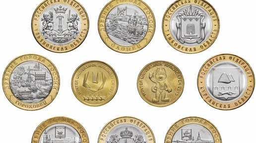 Юбилейные монеты номиналом 10 рублей выпускаются Банком России с 2000 года как памятные и коллекционные экземпляры. Они отличаются от обычных обращающихся монет тематикой, дизайном и часто материалом, включая двухцветные (биметаллические) и одноцветные (стальные с латунным покрытием). Все юбилейные 10 рублевки являются законным средством платежа, но интерес к ним обусловлен их редкостью и коллекционной ценностью. Существуют два основных вида юбилейных 10 рублей: На цену юбилейных монет 10 рублей...