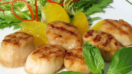 Ингредиенты: Гребешки предварительно размораживаем: перекладываем сначала из морозильной камеры в холодильник, а затем на бумажные полотенца, солим. Разогреваем сковороду-гриль. Обжариваем морские гребешки до золотистой корочки (внутри мясо должно получиться не до конца прожаренное). Листья салата промоем и просушим...