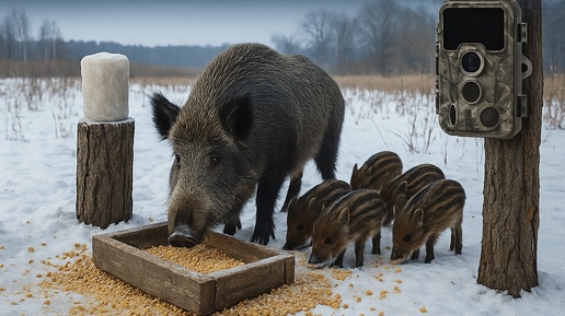 Соль, привада, фотоловушки: как я держу 15 кабанов на одном поле всю зиму 2025/26 🐗❄️🌾
