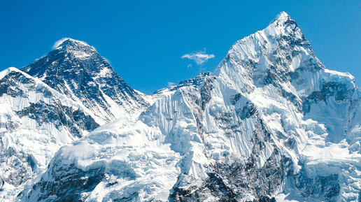 Гора Эверест. Самая высокая в мире, её высота над уровнем моря составляет 8848 метров.