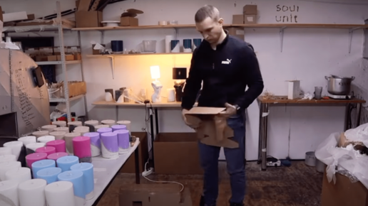 В 2020 году умирал мой бизнес – фитнес-студия. Мы не могли работать в коронавирус, абонементов продали, а оказать услугу не могли. Копились долги, и тогда у меня родилась дочка. В общем, сильно были нужны деньги. Жена показала фотографию бетонной свечи на Pinterest, и я подумал: Может быть, вот оно? В подсобке фитнес-клуба 5 кв. м. сделал свои первые свечи Купил цемент, а вместо воска натер самые простые свечи. Форму сделал из картонной коробки, обтянутой скотчем. После картонных коробок я продвинулся до форм из водопроводных труб...