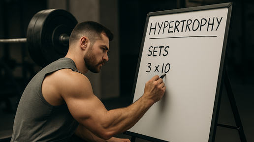 Порог «стартует-гипертрофия» — от 10 рабочих сетов на мышцу за неделю.