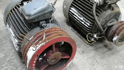 Купил на Авито два 11 киловаттных двигателя, каждый весил по 90 кг, заплатил за них 6500р. По таблицам в интернете узнал, что примерно в 11 киловаттном двигателе 6 кг меди. Решил проверить сам, сначала вытащил роторы. Остался статор. Статор распилил болгаркой. Остались две обмотки...
