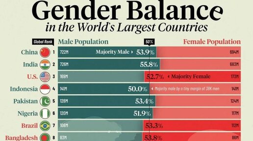 Привет, друзья! Сегодня я хочу обсудить с вами интересный демографический тренд в России. По данным на 2024 год, в стране 63% женщин и 37% мужчин. Это означает, что Россия вышла на первое место в мире по доле женского населения. До 35 лет мужчин в стране больше, но после этого возраста ситуация резко меняется. Максимальный разрыв между мужчинами и женщинами наблюдается после 60 лет. Это говорит о том, что в более старшем возрасте женщины в России живут дольше мужчин. Почему это важно? Этот тренд может иметь серьёзные социальные и экономические последствия...
