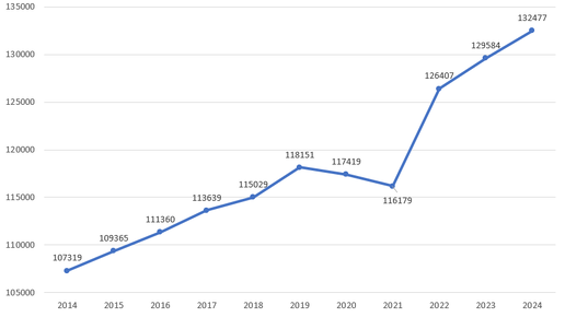 Калугастат опубликовал новые данные по населению Калужской области и, в частности, Обнинска. Численность постоянного населения Обнинска в 2024 году стала 132 477 человек, что на 2 893 человека больше, чем в 2023 году. Как показывает график, население Обнинска за последние 10 лет растёт. Численность постоянного населения по Калужской области резко выросла в 2022 году...