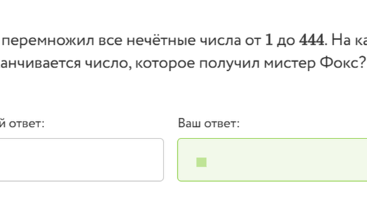 Итак задача: Затем он перемножил все нечётные числа от 1 до 444. На какую цифру оканчивается число, которое получил мистер Фокс? Если мы запишем задачу в виде примера, то получим: