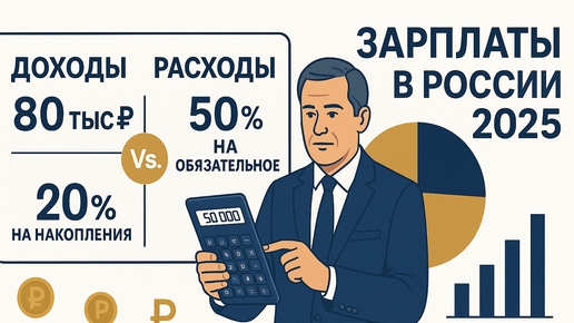 Сколько нужно зарабатывать для нормальной жизни в 2025: расчеты по регионам России Реальные цифры зарплат vs расходы в России 2025. Минимальная зарплата для комфортной жизни по регионам, формула 50/30/20 и чек-лист финансового здоровья от экспертов Знакомая картина: получаешь 80 тысяч, а к концу месяца снова считаешь копейки. При этом коллега с такой же зарплатой живет спокойно и даже откладывает. В чем разница? В понимании реальной математики денег. Раньше думал, что 60-70 тысяч — это нормально для жизни...