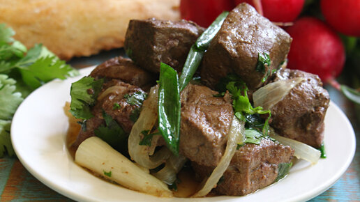 Рецепт для любителей блюд из субпродуктов. Такая печенка готовится очень быстро, главное заранее печень замариновать. Что тоже удобно, можно разделать печенку вечером, а на следующий день у вас будет обед или ужин на скорую руку. Но если совсем нет времени, то будет достаточно хотя бы получаса, чтобы печень полежала в соевом соусе. Эта печенка в азиатском стиле, всё готовится на сильном огне, много зелени, соевый соус. Получается великолепный вкус, сочно, мягко, ароматно, ярко! Ингредиенты: Печень говяжья - 500 г...