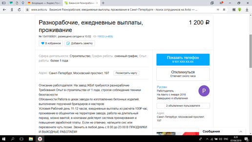 Разнорабочий - низкоквалифицированный и тяжелый труд, который иногда оплачивают достойно, а иногда - нет. Тут все зависит от того, через прямого работодателя работает человек, или через кривого, то есть через посредника. Посредники - бич строек. Как правило, это люди недалекого ума и без образования, при этом имеющие связи в сфере строительства. Иначе в эту сферу просто так не залезть Типичное объявление от посредника выглядит вот так Работать на заводе железобетонных изделий за 100 р в час... Даже по меркам посредников это уже наглость...