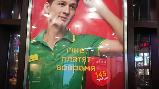 Недавно зашел в одно заведение всем известной сети быстрого питания. Думаю, из названия статьи уже понятно, о какой именно сетке я говорю. И там висело прелюбопытнейшее объявление. Жизнерадостный парень по имени Кирилл (судя по бейджику) во всеуслышание заявляет: "Мне платят вовремя 145 рублей в час". Приглядевшись к его лицу, все же можно прочесть на нем легкую неудовлетворенность. Может он так же как и я прочитал надпись на плакате "НЕ платят вовремя", а может просто он узнал, сколько работник Мака получается в Европе...