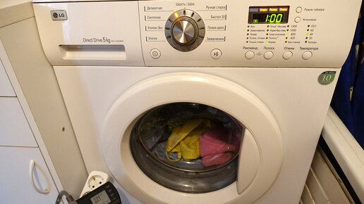 Я запустил мою стиральную машину LG WD-12400NDK на самую часто используемую программу - деликатная стирка при 40° с отжимом 800 оборотов в минуту. Эта программа выполняется ровно час.