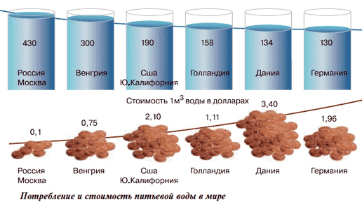 Сейчас в России не платить за воду из крана могут только владельцы собственных скважин и колодцев в частных домовладениях. Остальным приходится платить за поставляемые водные ресурсы. В советские времена сумма в квитанциях за воду начислялась по нормативу. То есть при расчете коммунальных платежей умножалась утвержденная норма потребления на количество человек, проживающих на данной жилплощади. С 1996 года в целях экономии и разумного потребления воды в российских квартирах была рекомендована установка водосчетчиков...