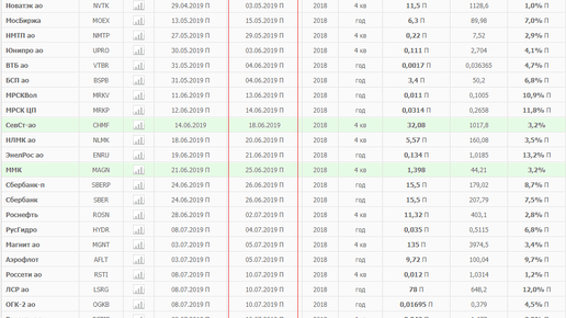 В 2019 году держатели акций получат дивиденды за 2018 год. Какие компании будут платить? И какой размер дивидендных выплат ожидается? Ответы ниже. Дивиденды по акциям, как правило, выплачиваются в этом году по итогам прошедшего финансового года (т.е. 1 раз в год). Но некоторые компании выплачивают дивидендные доходы по итогам полугодия (т.е. 2 раза в году) и даже по итогам каждого квартала (4 раза в году), хотя таких эмитентов немного. Как получать дивиденды? Для этого нужно быть собственником акций той компании, дивиденды которой вы хотите получить...
