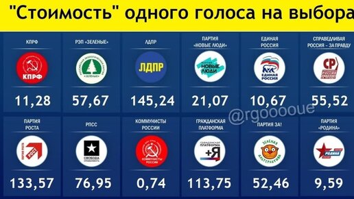 Сколько партии-участники выборов потратили в расчёте на одного проголосовавшего за них избирателя 🤑 Самая большая потраченная из избирательного фонда сумма (почти 618 млн руб) принадлежит ЛДПР, однако из количества в качество результат не перешёл 😢 Коммунисты России решили не тратиться на агитку...