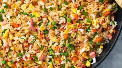 Урожайность: 3 порции Общее время: 25 минут Ингредиенты 3 стакана вареного длиннозернистого коричневого риса (желательно без риса. Подойдет и белый) 3/4 фунта куриных грудок без кожицы, нарезанных кубиками 3/4 дюйма 1 столовая ложка обжаренного кунжутного масла, разделенного 1 столовая ложка рапсового масла, разделенного 1 1/3 стакана смеси замороженного гороха и моркови 3 нарезанных зеленых лука 2 измельченных зубчика чеснока 2 больших яйца 3 столовые ложки соевого соуса с низким содержанием натрия...