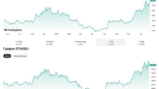 Котировки Эфира сильно подросли, но уже началась коррекция