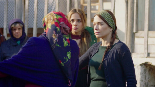 Сехер подняв камень выбегает во двор. Во дворе столпились зеваки. Будущая сватья Сехер бросает на ступеньки дома Сехер приданое: