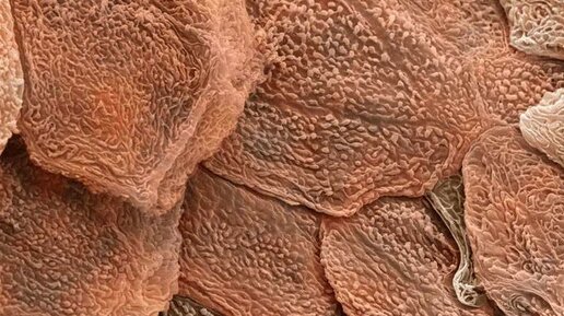 В течение процесса эпителиальной дифференцировки, клетки эпидермиса кожи постепенно увеличиваются в размерах, уплощаются и ороговевают.