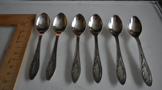 Выставил в продажу купленные столовые приборы: ложки, вилки и ножи. Приборы в хорошем состоянии, цены низкие. Цена аукционная. Изготовлены во времена СССР. Материал мельхиор МНЦ. Показываю фото и стартовая цена. Не забывайте про почтовые расходы. Кофейные ложки в отличном состоянии. По назначению не использовались. Стартовая цена 200 рублей за 6 штук. Ссылка на лот https://clck.ru/34DZty Столовые ложки в хорошем состоянии. Стартовая цена 300 рублей за 6 штук. Ссылка на лот https://clck.ru/34DZxK Ещё 6 штук столовых ложек в хорошем состоянии...